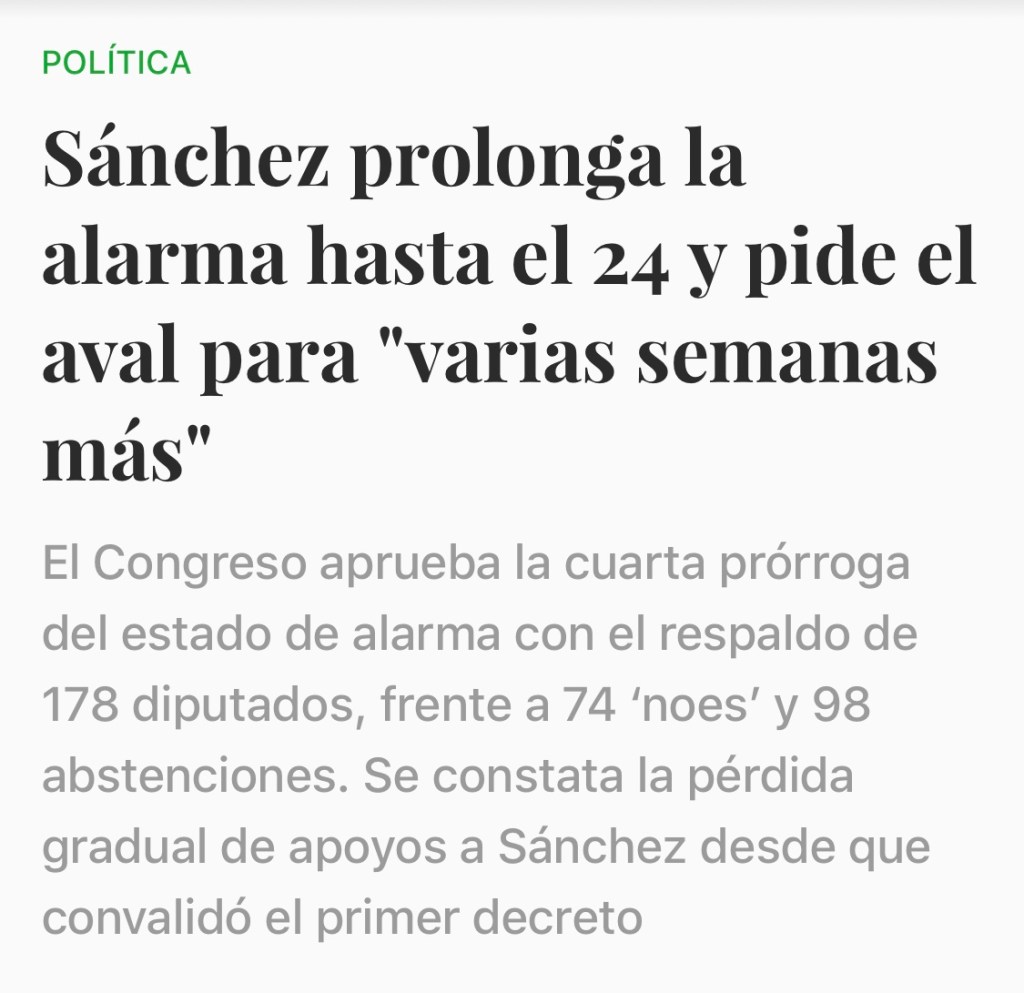Il presidente del gobierno estende lo stato di allarme.