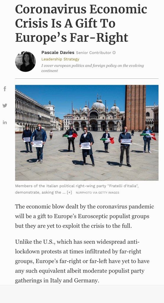 È cosa nota che i populismi di destra e sinistra – sempre che queste due definizioni abbiano ancora un qualche legame con la realtà – approfittino delle crisi per guadagnare consensi.