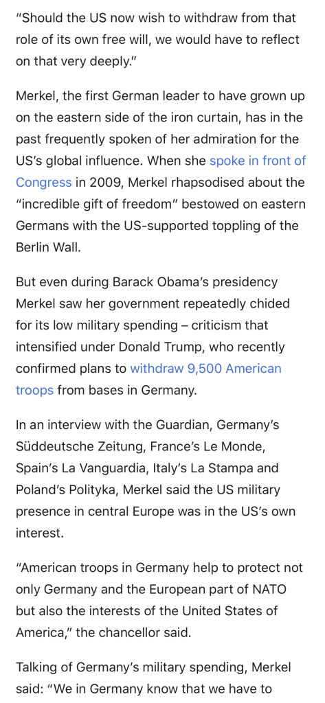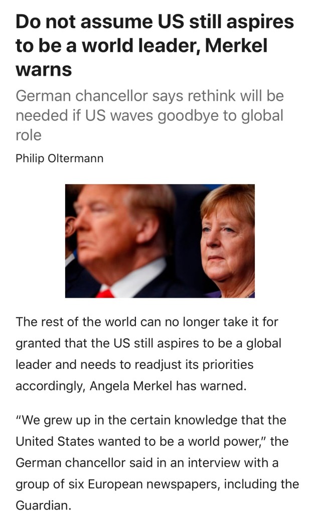 Frau Merkel mette in serio dubbio la leadership a stelle e strisce.