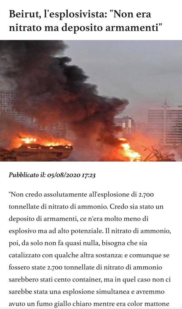 Non sapevo dell’esistenza degli “Esplosivisti”, ma questo in particolare nutre dei dubbi sull’origine dell’esplosione in Libano.