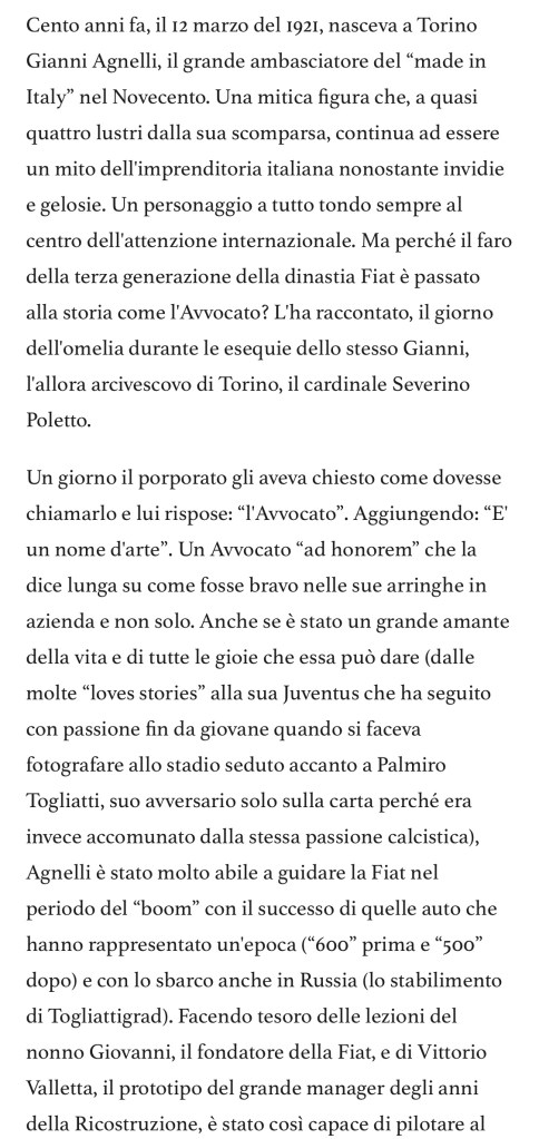Tante volte mi chiedo: chissà cosa direbbe l’Avvocato di questi folli tempi.