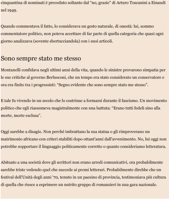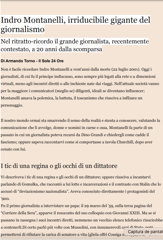 Sono già vent’anni senza Indro Montanelli, uno di cui si può pensare ciò che si vuole, ma a cui non si può fare a meno di pensare quando si parla di giornalismo. Il buon editoriale di Armando Torno sul Sole24Ore lo racconta.