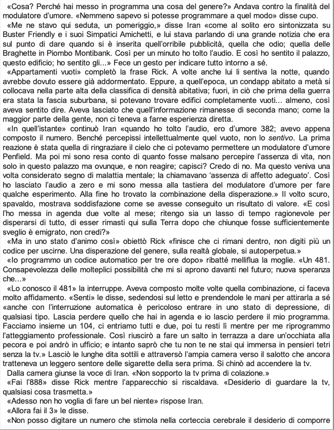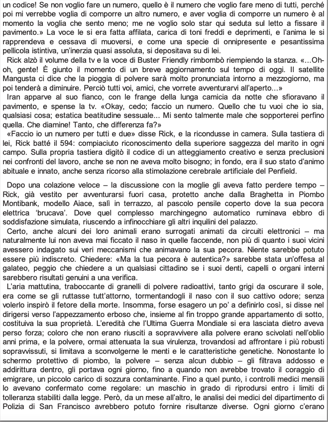 Probabilmente il caso più noto di trasposizione dickiana nel cinema, insieme a Minority Report, di certo un cult per tutti gli amanti della fantascienza. Ecco il romanzo a cui si e ispirato Ridley Scott per Blade Runner, enjoy.