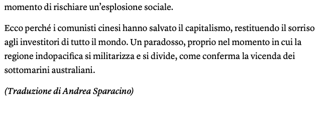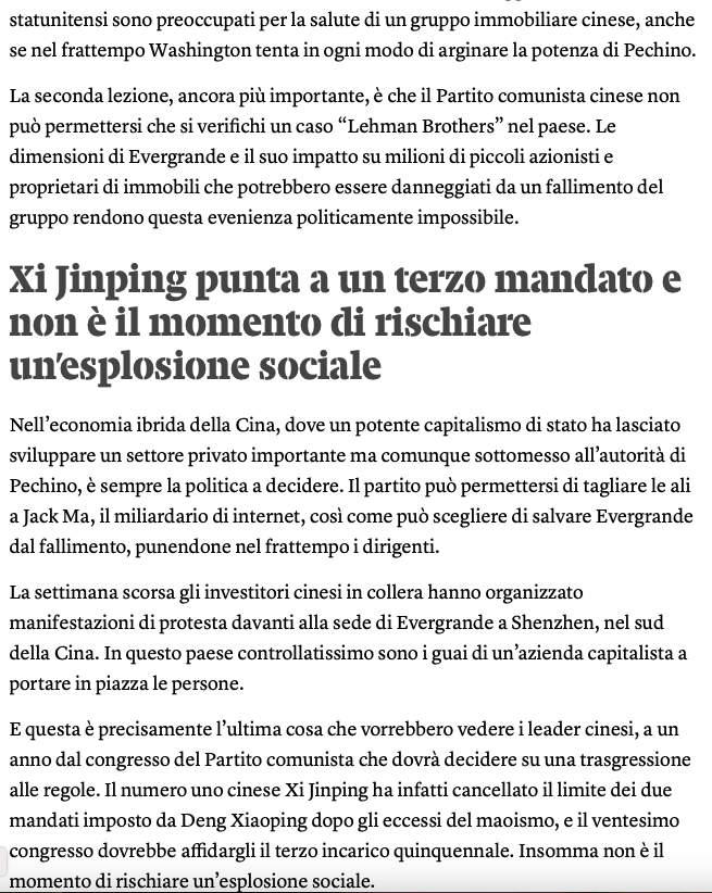 Ora, senza soffermarsi sull’ossimoro ideologico implicito nel titolo di Internazionale, qui la questione è che se il governo di Pechino è intervenuto, l’affare Evergrande è molto più grosso di quello che immaginavamo.