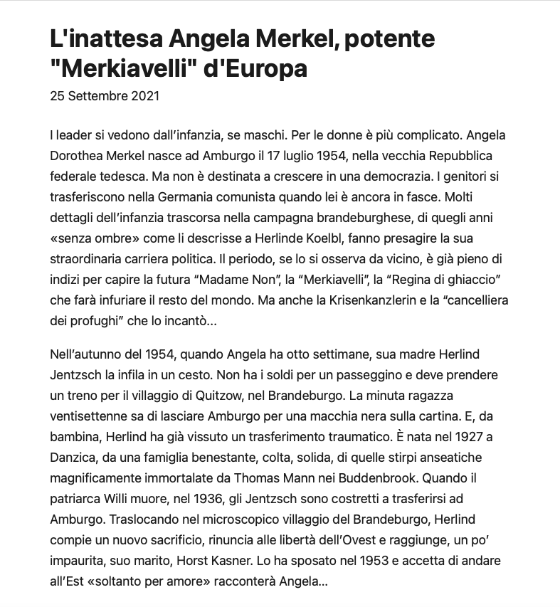 Con le elezioni di domenica, finisce l’epopea politica di Angela Merkel. Rispettata tanto da chi l’ha odiata quanto da chi l’ha amata, la prima donna Cancelliere della Storia non si farà dimenticare facilmente.