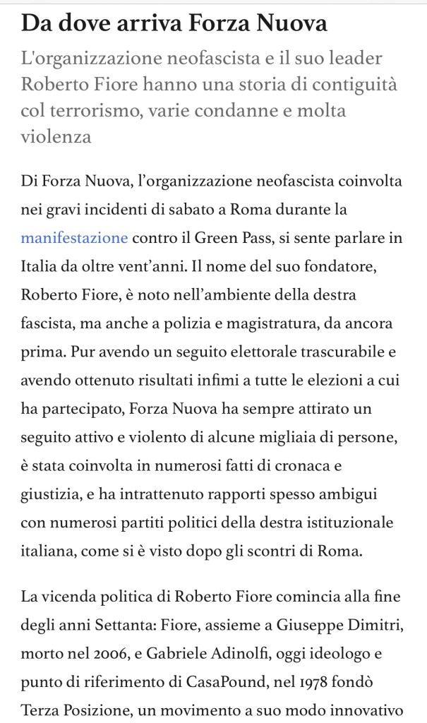 A me sembra che si tratti dei soliti criminali di stampo mafioso che grazie a tanta ignoranza e voglia di menare le mani diventano gli utili idioti di impotenti potenti. Non amo i fascisti, ma questi non son degni nemmeno di quell’epiteto, semplici criminali comuni amici degli amici.